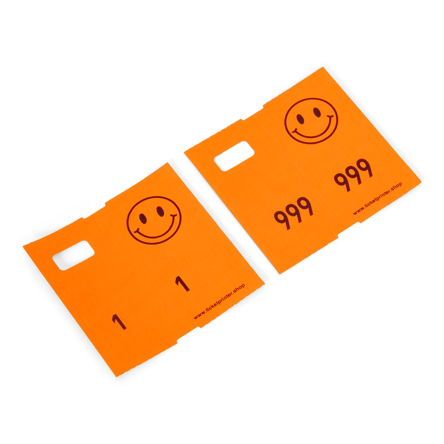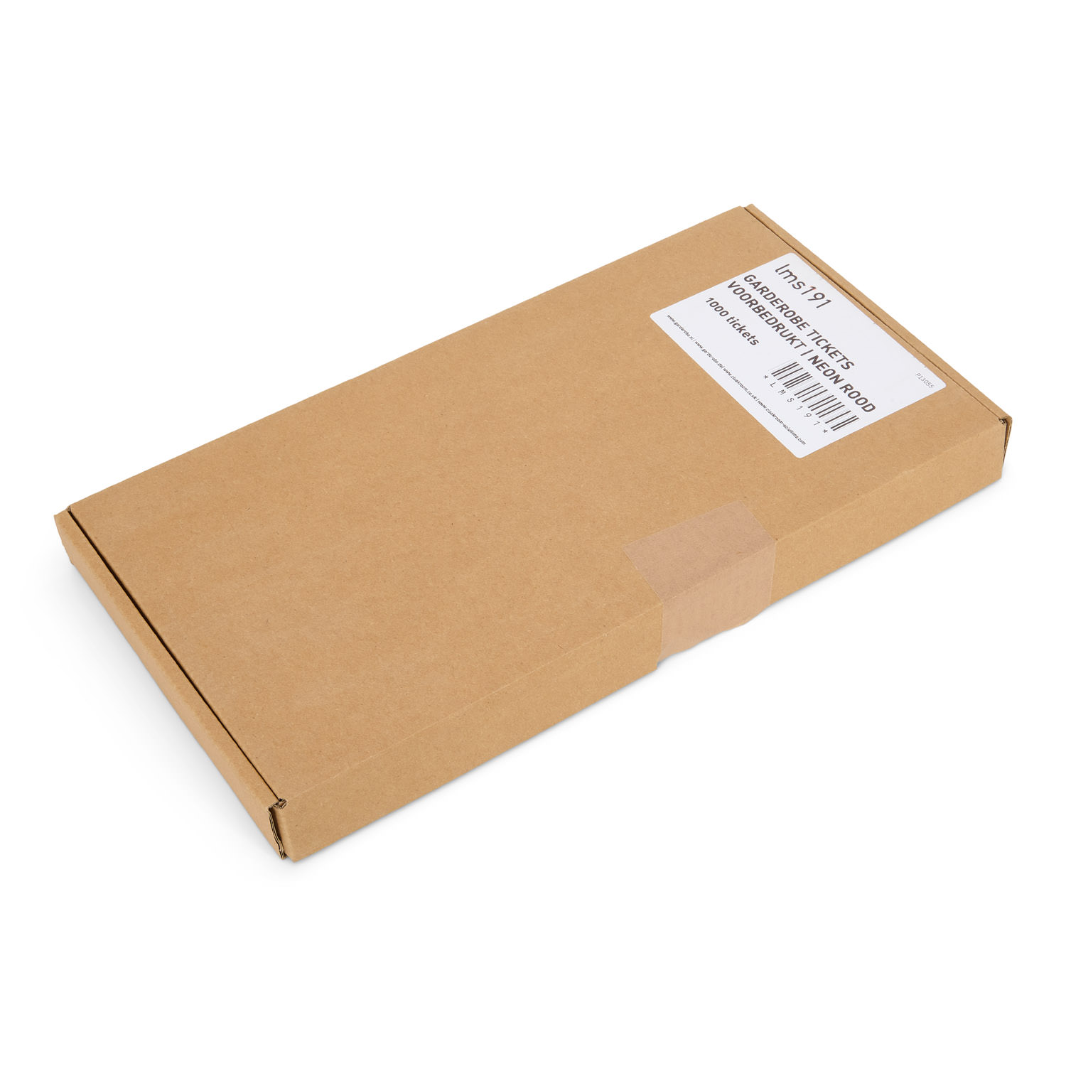 Replace your plastic cloakroom tags with our high-quality pre-printed cloakroom tickets in NEON RED/ORANGE. A value pack containing 1000 coat check tickets is an easy solution for events. Use the numbered sequences to check your turnover. Need tickets more frequently? Look at our Coat Check Ticket printer, an excellent solution for printing your tickets — up to 50% cheaper than pre-printed tags.